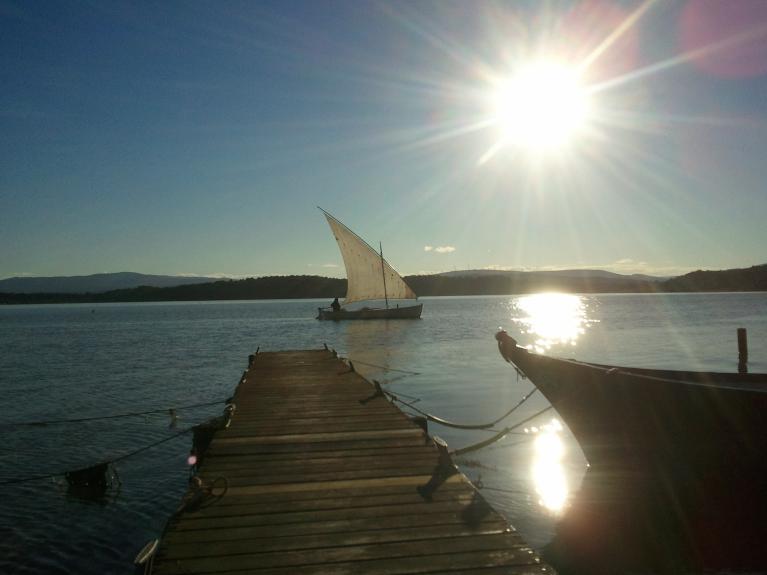 Landmark is the plank walk on the old salt that sustains the village.
