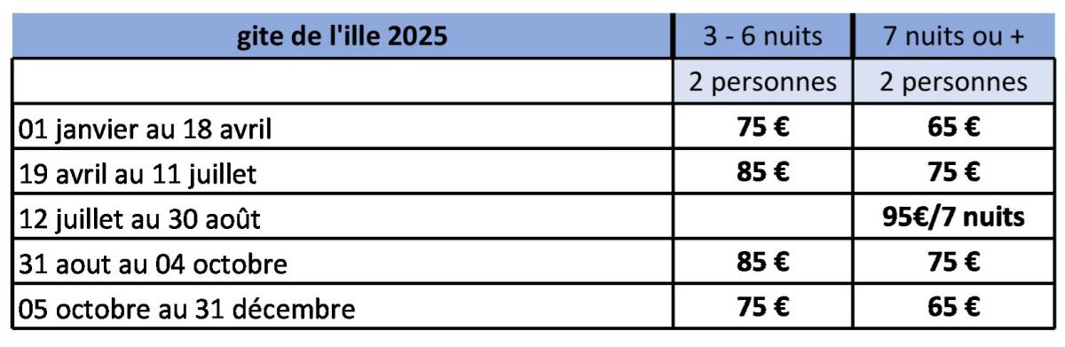 • paiement: espèces, chèques, chèques vacances et virement. Pas de carte bleue