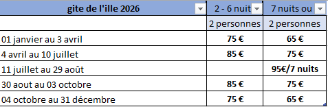 • paiement: espèces, chèques, chèques vacances et virement. Pas de carte bleue